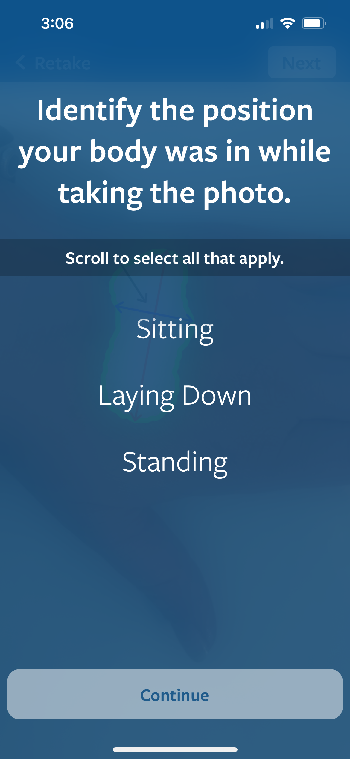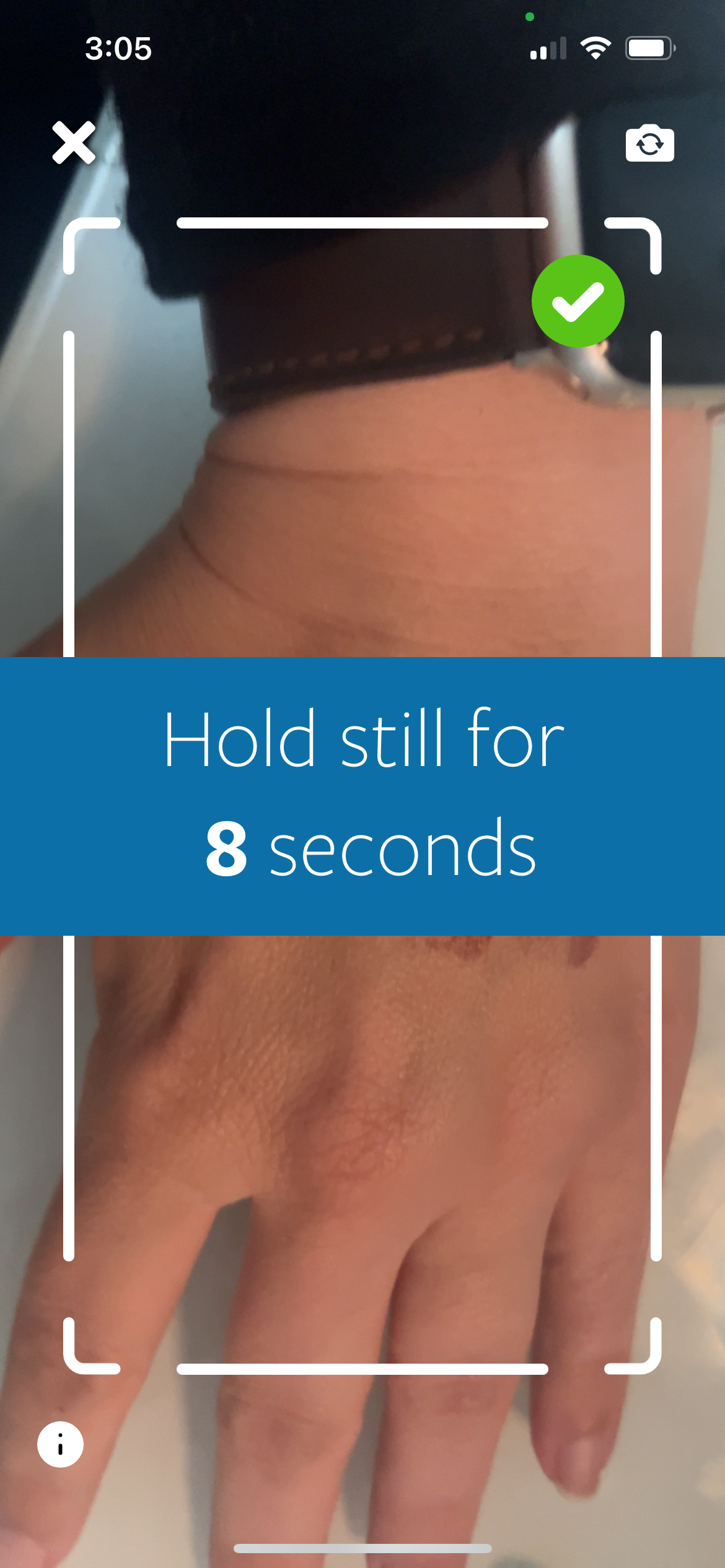 Another consideration for the design of the feature functionality was the location of the wound. As the AI leveraged the facial recognition technology in the front-facing (selfie) camera to get an accurate measure of depth, photos often needed to be taken blindly — a feat not easily accomplished if your wound was on your backside. My teammate and I began to explore how to embed tactile and haptic feedback, such as sound and vibration to guide users to get a good quality image.