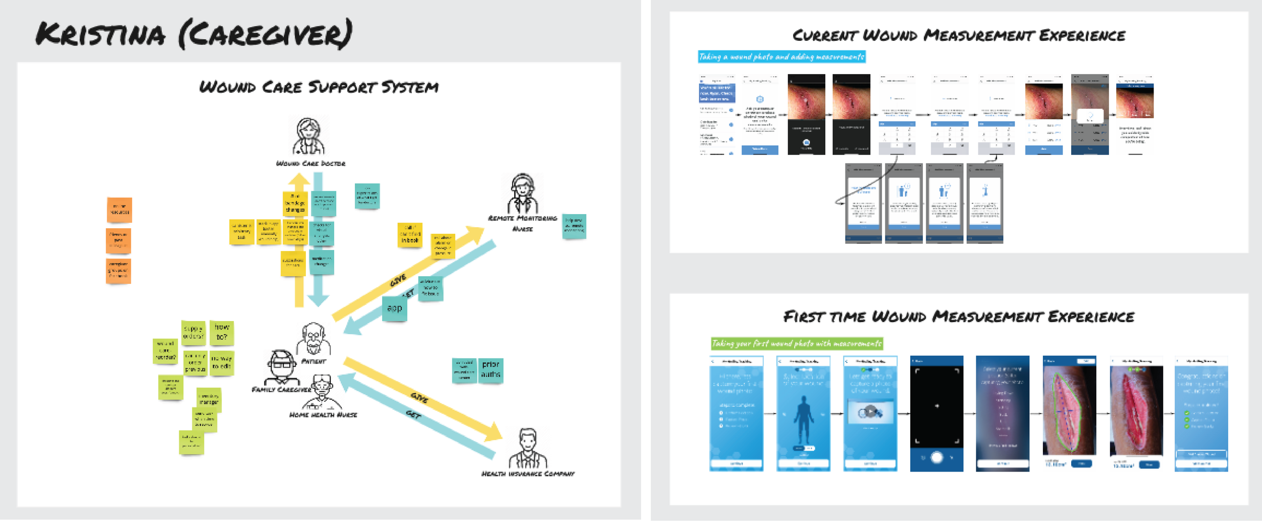 My teammate and I started by immersing ourselves in the world of wounds, understanding the terminology, treatments, and practitioners who supported patients in the wound healing process. As a companion app to a prescribed wound therapy that was closely monitored by a team of providers, we needed to understand what value the AI-enabled wound-tracking function could add, outside of what the patient already knew.